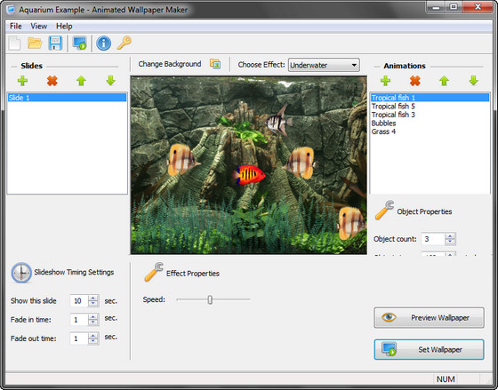 Animated Wallpaper Maker - превратит статичные изображения в анимированные картинки и установит их в качестве обоев рабочего стола. Вы сможете анимировать абсолютно любое изображение. Вам не понадобятся дорогие, сложные программы! Вы сможете создать анимированные обои всего за пару минут. Загрузите изображение, настройте параметры анимации и поместите результат на рабочий стол. В программу входит редактор, позволяющий добавлять анимацию к стандартным обоям Windows (поддерживает все популярные графические форматы) и встроенный плеер, замещающий статичный фон анимированными обоями. Анимированные обои используют минимум системных ресурсов и по желанию могут быть включены или отключены. Вдохните новую жизнь в свой рабочий стол!