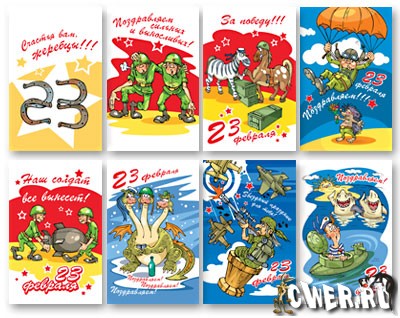 Набор прикольных открыток для поздравления мужчин с 23 февраля.