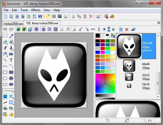 Axialis IconWorkshop - мощная программа для создания высококачественных профессиональных иконок, а тажке для их редактирования. Основана на многооконном интерфейсе, что даёт возможность одновременно редактировать сразу несколько иконок. Среди нестандартных инструментов редактора, нужно отметить градиентные заливки и 3D эффекты. При редактировании иконки можно пользоваться многоуровневой отменой действий. Программа умеет создавать иконки (ICO), а также ICL и DLL файлы с иконками. Может модифицировать иконку прямо в приложении или библиотеке. Импортирует JPEG и BMP файлы.