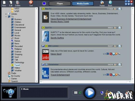 Readon TV Movie Radio Player 5.5.0.0 представляет собой программу, с помощью которой Вы сможете просматривать тысячи различных каналов Интернет-телевидения и Интернет-радио. Понравившиеся музыкальные композиции можно сохранить в формате mp3. Программа имеет удобный интерфейс: все каналы разбиты по странам (есть несколько десятков на русском языке) и категориям. Readon TV Movie Radio Player 5.5.0.0 - это действительно лучший программный продукт в своей области.