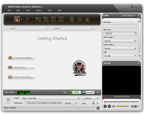 ImTOO DVD Ripper Ultimate - это одна из лучших программ на сегодняшний день по конвертации DVD и созданию рипа непосредственно с DVD диска (совместная разработка ImTOO Software Studio и Xilisoft Corporation). Конвертирует DVD в любые видео и аудио файлы, воспроизводимые на многих цифровых мобильных устройствах (PSP, PS3, iPod, iPhone, Apple TV, Archos, iRiver PMP, Creative Zen, мобильные телефоны, смартфоны). А теперь программа поддерживает и технологию NVIDIA® CUDA™.