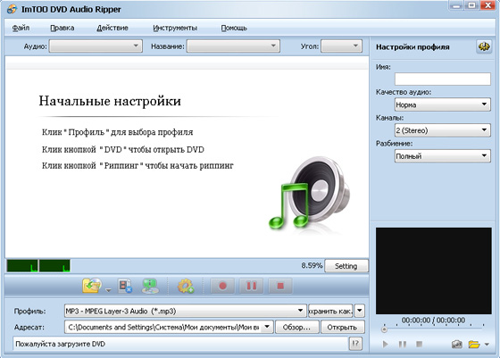 ImTOO DVD Audio Ripper - современный аудио риппер DVD в MP3 и DVD аудио "экстрактор", который обеспечивает простой и быстрый способ для конвертирования DVD в форматы MP3, WAV, WMA, AAC, AC3, OGG, RA с высокой скоростью. Больше не понадобятся никакие сложные программы! Этот аудио риппер представляет собой идеальное решение для риппинга музыкальных DVD фильмов и для конвертации DVD в MP3. Слушайте ваши любимые фильмы и концерты DVD на вашем портативном аудио плеере!