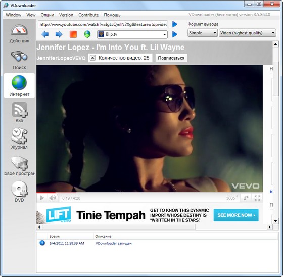 VDownloader - бесплатная программа для загрузки и сохранения видеороликов с YouTube и других подобных сайтов в удобном для просмотра формате: совместимом с iPod, Sony PSP, мобильным телефоном или сохранить в AVI (выбрав разрешение) или MPG.