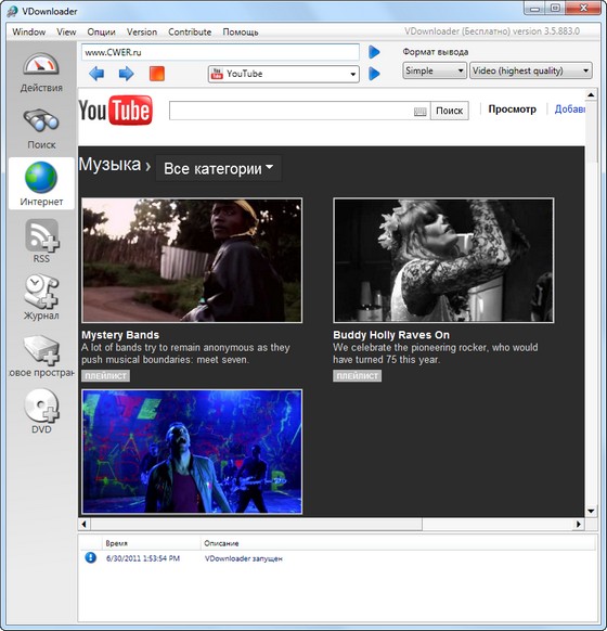 Обновилась бесплатная программа, позволяющая находить и скачивать видео с сервисов Youtube, Google, MySpace и др. напрямую, без захода на сами сайты. VDownloader может сохранять файлы не только в изначальном FLV, но и в MPEG-, VCD-, SVCD-, iPod-, 3GP-, PSP-, DVD- или AVI-форматах.