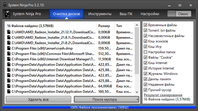 System Ninja — это быстрое, мощное и эффективное решение для оптимизации системы Windows. Он предназначен для быстрого удаления ненужных файлов, повышения скорости работы системы и устранения проблем.