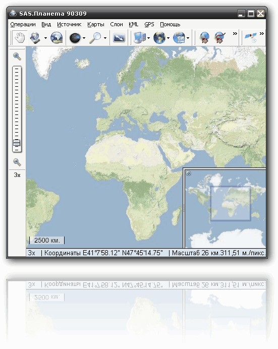 SAS.Планета - программа предназначеная для просмотра и загрузки спутниковых высокого разрешения снимков и обычных карт, представляемых такими сервисами, как Google Maps, DigitalGlobe, “Космоснимки“, Яндекс.карты, Yahoo! Maps, VirtualEarth, Gurtam, OpenStreetMap, eAtlas, iPhone maps, карты Генштаба и др., но в отличие от этих сервисов, все скаченные вами карты останутся у вас на компьютере, и вы сможете их просматривать даже без подключения к интернету. Помимо спутниковых карт возможна работа с политической, ландшафтной, совмещенной картами, а также картой луны и марса.
