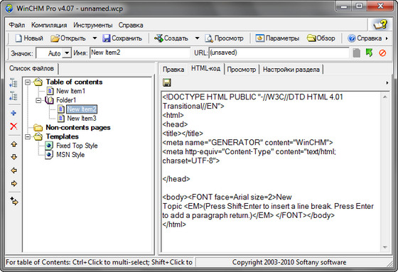 WinCHM - многофункциональная программа для создания файлов помощи, книг или журналов в форматах HTML help(CHM), Web help, PDF и документах Word. Страницы справок редактируются в удобном редакторе, большим плюсом программы является то, что она не использует сторонних компиляторов, при этом имеет сравнительно небольшой размер. Поддерживается: встроенный визуальный HTML-редактор; автопоиск html-документов и автосоздание оглавления; редактор оглавлений и значков; визуальный дизайнер CHM.