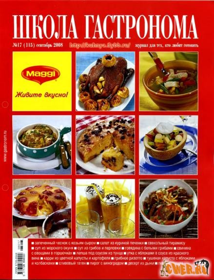 "Школа гастронома" - журнал для тех, кто любит готовить. В каждом номере журнала - кулинарные рецепты с подробнейшим поэтапным описанием приготовления блюда. Каждый шаг на пути к кулинарному шедевру, будь то яичница-глазунья или замысловатый французский соус, иллюстрирован цветными фотографиями. Все рецепты подобраны так, чтобы входящие в них продукты могла позволить себе средняя российская семья.