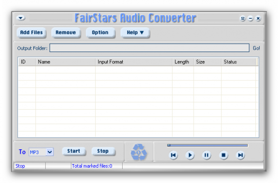 FairStars Audio Converter – конвертер аудио файлов различных форматов (WAV, APE, OGG, MP1, MP2, MP3, WMA, WMV и др.). Программа позволяет нормализовать композиции по звучанию, улучшить качество воспроизведения, заполнить или отредактировать ID3 тэги. В работе отличается высокой скоростью конвертирования без создания временных (промежуточных) файлов. Имеет встроенный проигрыватель. Удобство работы также обеспечивается простым дружелюбным интерфейсом.