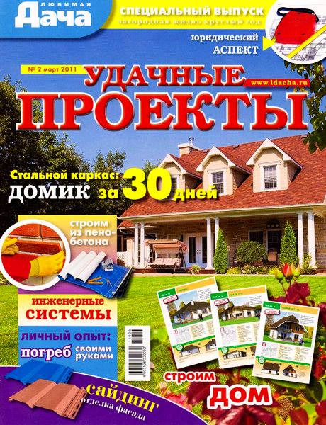 Популярный иллюстрированный журнал о круглогодичной загородной жизни. Информация на любой вкус: советы и рекомендации о том, как обустроить дачный участок, как построить дом; как сделать дачный ландшафт красивым и уютным; как выращивать овощи и фрукты на дачном участке и что делать с урожаем, кулинарные премудрости.