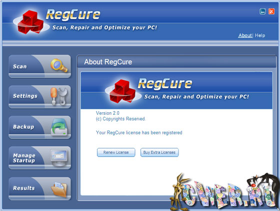 RegCure - программа, которая быстро и эффективно просканирует и очистит системный реестр Windows для того, чтобы ваш компьютер мог работать с максимальным уровнем быстродействия. Эта программа позволит вам удалять ошибки в реестре вручную, в зависимости от ваших требований или автоматически выполнит его тщательное сканирование и очистку. Дружественный пользовательский интерфейс, позволит Вам контролировать прогресс сканирования, настроить RegCure на сканирование в удобное для вас время, а так же удалять и управлять автоматически запускаемые программы.