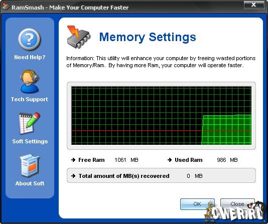 SuperRam - мощный инструмент для оптимизации и управления компьютерной памятью. Работать с программой просто - с ней справится даже человек, никогда раньше не работавший с подобными утилитами. Вам будет достаточно выбрать объем памяти, который будет использоваться, и объем, который следует освободить, после чего нажать кнопку "ОК". Остальное сделает SuperRam.