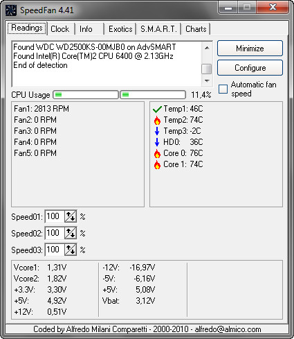 SpeedFan - системная утилита для контроля за параметрами материнской платы.