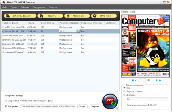 Xilisoft PDF to EPUB Converter - предназначена для электронных книг пользователей, которые ищут быстрый, простой и эффективный способ для преобразования PDF файлов в формат EPUB, программа позволяет просматривать PDF файлы на электронной книге, путем преобразования их в формат EPUB. С этой программой преобразование PDF в EPUB может быть достигнуто в 2 этапа: перетащите файл в приложение и нажмите кнопку "Конвертировать".