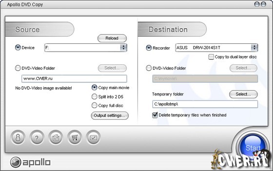 Apollo DVD Copy- является превосходным инструментом для конвертирования один к одному DVD на DVD-R/RW или DVD+R/RW носители или жесткий диск для последующего прожига, программа позволяет разбивать двухслойные диски (DVD9) на два диска (DVD5), также позволяет редактировать содержимое DVD диска (удаление ненужных файлов, добавление новых, поддержка: NTSC и PAL видео, большинства SCSI, IDE, USB DVD пишущих приводов.