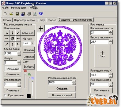 Stamp - программа для создания печатей и штампов! Эта программа позволяет быстро и легко создать печать любой сложности. Для создания печати не требуется хорошо знать компьютер, программа проста в использовании и ей может воспользоваться каждый!