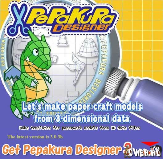 Pepakura Designer - программа от японских разработчиков, предназначенная для создания бумажных моделей из 3D данных. Является единственной в этом направлении программным обеспечением для создания бумажных моделей из трехмерных файлов. Программа поддерживает различные форматы 3D моделей, включая 3DS, DXF, MQO, LWO, OBJ, STL, KML, KMZ и т.д. В программе не имеется возможности создания самих трехмерных моделей и не имеется никакого редактора 3D моделей, но вместо этого программа позволяет переводить трехмерные модели в 2D формат для последующей печати на принтере.