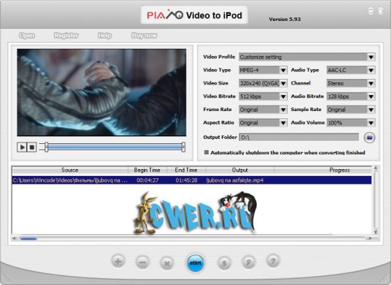 Plato Video To iPod Converter - программа для конвертирования видео в формат iPod, PSP, 3GP для просмотра на iPod, PSP (sony playstation portable), мобильных телефонах, Xbox, КПК, PMP. Способен работать почти со всеми форматами: rm, divx, xvid, avi, wmv, asf, mpg, mpeg, vob, mov, qt, vcd, svcd, Apple iPod MP4, Sony PSP MP4, 3GP, X-box MPEG2, PMP, PDA, SD Video ASF, AVI, MPG, MPEG, ASF, MOV, AMR, FLV, FLIC, SWF и другие.