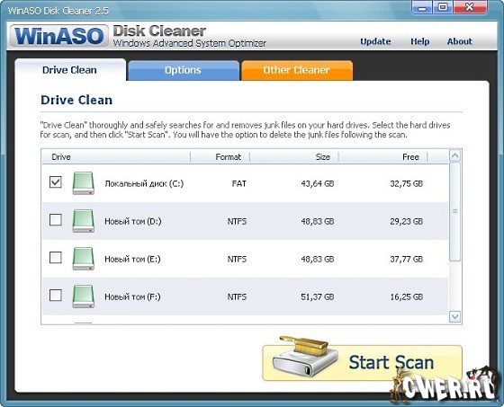 Portable WinASO Disk Cleaner v2.5 - мощная утилита для чистки дисков от информационного мусора, ненужных документов, старых резервных копий и всего того, что загромождает дисковое пространство на компьютере и не содержит никакой важной информации.
