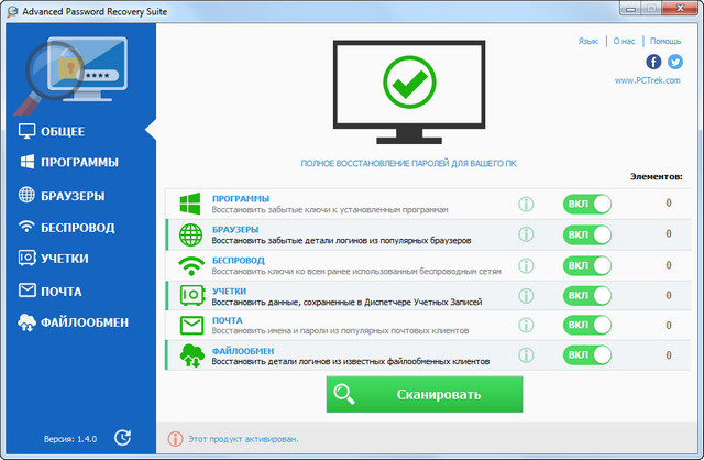 Advanced Password Recovery Suite - простой в использовании инструмент с возможностью восстановления забытых программных ключей или деталей входа в систему для большинства популярных веб-браузеров, беспроводных сетей, диспетчера учетных данных Windows, электронной почты или FTP-клиентов.