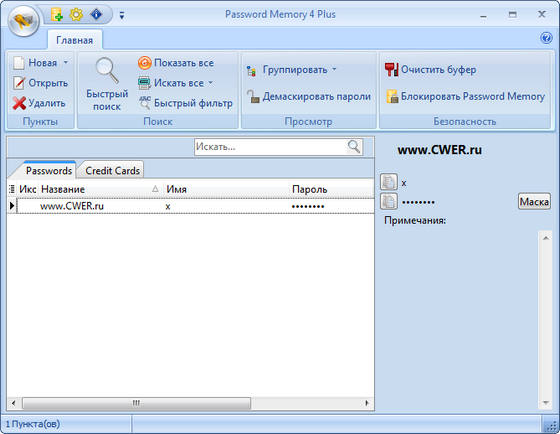 Password Memory - мощный менеджер паролей, сохраняющий все пароли, которые Вы используете на компьютере, в файл формата XML, HTML, Excel и т.д. Программа рекомендуется для людей, работающих на разных компьютерах, например дома и на работе. Сохранять пароли в браузере или программах, как известно, не безопасно. Но с программой Password Memory это уже не проблема. Вы можете установить её на флешку, и подключать к компьютеру, с которым работаете. Программа сама будет показывать Вам все пароли. В программе поддерживается многопользовательский режим работы. Доступ к своим данным можно защитить паролем.