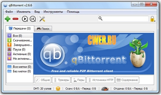 qBittorrent - Bittorrent-клиент со встроенным поисковым движком, поддержкой unicode, Drag'n'Drop, возможностью скачивать только указанные файлы, а не весь торрент, работой через прокси и т.д. Интерфейс - многоязычный.