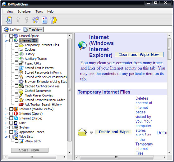 R-Wipe & Clean - это эффективная утилита очистки дискового пространства и сохранения конфиденциальности информации. R-Wipe&Clean полностью удалит временные интернет файлы, журнал посещенных страниц, куки, автозаполняемые формы и пароли, файлы подкачки, список недавно использовавшихся документов, список часто используемых компонентов, хранящихся в системном реестре, временные файлы и т.д.