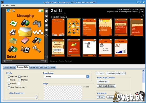 Программа MyThemeCreator поможет вам создавать темы практически для всех телефонов Sony Ericsson и Nokia: Series 40. Приложение обладает удобным интуитивным интерфейсом - ничего экстраординарного, но опций, тем не менее, вполне достаточно для того, чтобы усовершенствовать оформление телефона (причем значительно).
