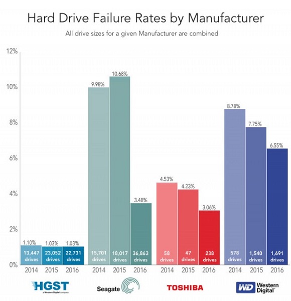 Компания Backblaze опубликовала статистику надежности накопителей на базе жестких дисков за 1 квартал 2016 года. Статистика основана на 61 590 винчестерах, работающих в центре обработки данных Backblaze, суммарно наработавших более миллиарда часов.