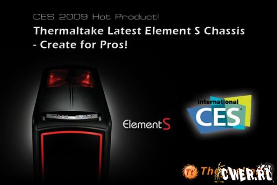Пресс-служба компании Thermaltake Technology официально объявила о выводе на рынок столь ожидаемого многими компьютерного корпуса под названием Element S, первая публичная демонстрация которого состоялась в рамках международной выставки CES 2009 в Лас-Вегасе.