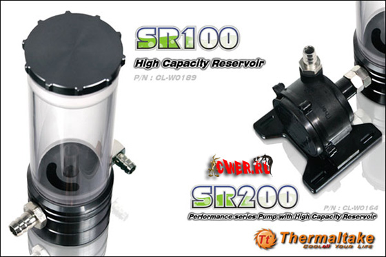 Компания Thermaltake Technology решила предоставить обладателям её фирменных систем жидкостного охлаждения возможность их модернизации и анонсировала выпуск нового резервуара Thermaltake SR100 (код CLW0189), который будет доступен как отдельно, так и в комплекте Thermaltake SR200 (код CL-W0164) вместе с уже хорошо зарекомендовавшей себя помпой Thermaltake P500 (код CL-W0132).