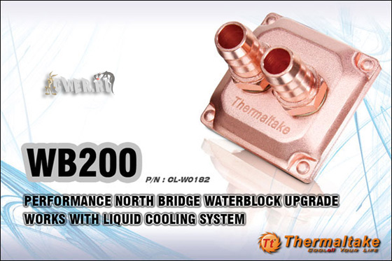Компьютерным энтузиастам, отдающим предпочтение жидкостному способу охлаждения горячих компонентов своих настольных систем, компания Thermaltake Technology предлагает новый водоблок WB200 (серийный номер CL-W0182), призванный обеспечить эффективный отвод лишнего тепла от северного моста материнской платы.
