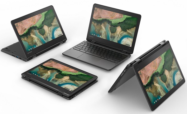 На выставке MWC 2018, которая проходит в Барселоне с 26 февраля по 1 марта, компания Lenovo объявила о начале продаж защищенных от влаги и пыли хромбуков — перевертышей Lenovo 500e и 300e, а также традиционного 100e. Как отмечает производитель, устройства разработаны специально для учебных заведений.
