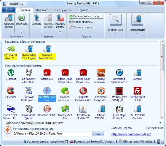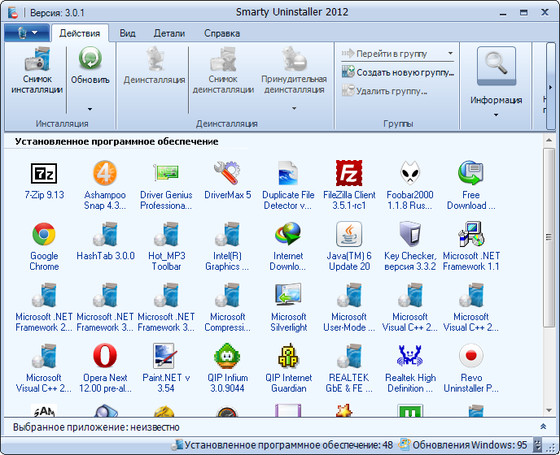 Smarty Uninstaller — программное обеспечение , которое позволяет полностью удалить программы (64 и 32 бита) , установленные на вашем компьютере. Он служит заменой стандартному диалогу Добавить/Удалить программу Windows . При этом работает приблизительно в 5-10 раз быстрее стандартного деинсталлятора Windows. Может показывать соответствующие значки приложений. Имеется функция поиска приложения по ключевому слову. Smarty Uninstaller автоматически обнаруживает неисправные ключи реестра и полностью удаляет их по вашему разрешению.