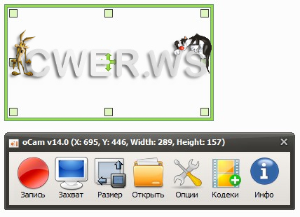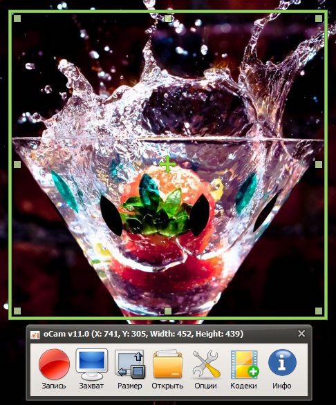 oCam - бесплатная программа, позволяющая быстро и качественно записать видео всего происходящего на экране. Кодирование (сжатие) получаемого видео производится кодеками, установленными в систему. Для записи можно определить на выбор захват всего экрана, области готового размера, самому задать размер записываемой области (мышью) или определить окно какой-либо программы, которое будет записываться.
