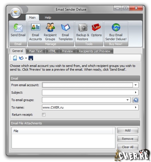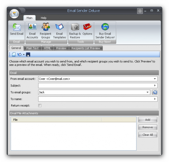 В Email Sender Deluxe отправка персонализированных Email навалом и бюллетеней для Ваших клиентов стало намного проще! Просто выберите получателя, напишите ваш Email и нажмите Отправить!