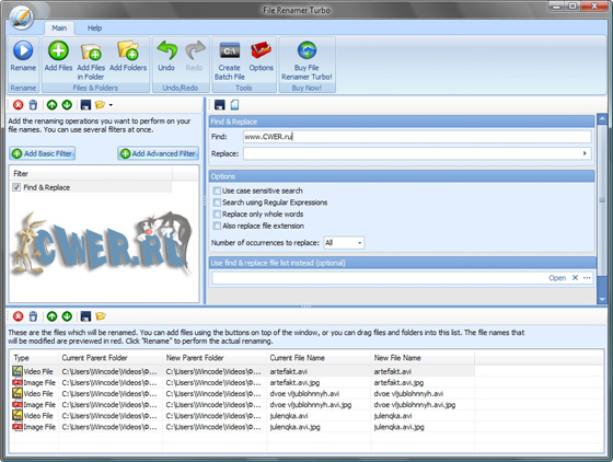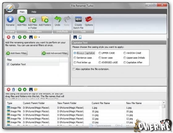 File Renamer Turbo - это новейший инструмент, который значительно облегчит вашу жизнь! Если вам нужно переименовать несколько файлов или заполнить ID3 тэги к MP3 файлам и музыкальные тэги к WMA, M4A, OGG, FLAC, APE или MPC файлам, эта программа сделают всю работу за пару минут. Программа проста в использовании и обладает всей функциональностью, которая вам будет нужна.
