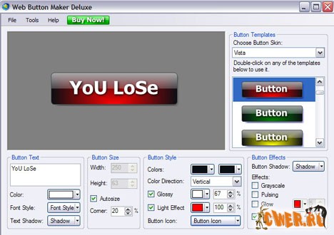 Программа для создания красивейших кнопок на сайт! Если не хочется рисовать кнопки в фотошопе, или еще где нибудь, я советую воспользоваться этой программой. 3 стиля - это XP, Vista, и Aqua.