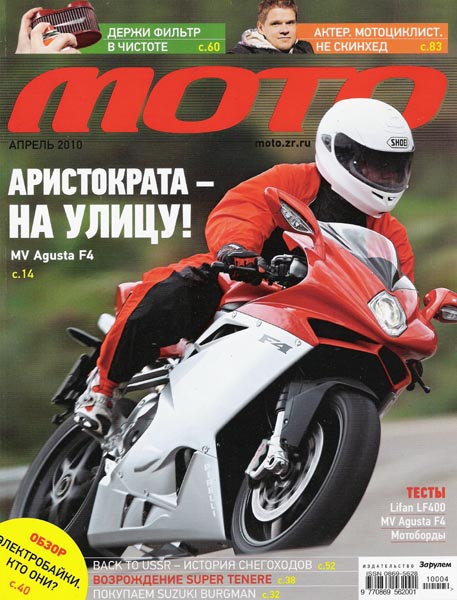 "Мото" - это наиболее оперативное и осведомленное в своей области специализированное издание в России. Отражает всю палитру тем, волнующих любителей мотоциклов, учитывает вкусы и потребности всех, независимо от уровня достатка и социальной принадлежности. В журнале публикуется полная и подробная информация о событиях мотоциклетной жизни во всем мире.