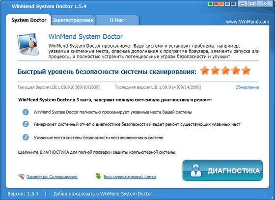 WinMend System Doctor является усовершенствованным центром безопасности Windows. С ее новаторским и интеллектуальным двигателем обнаружения, программа может эффективно обнаруживать и устранять уязвимости безопасности в системе, установить уязвимости в сторонних приложениях и предотвратить запуск вредоносных программ, троянов, вирусов, процессов.