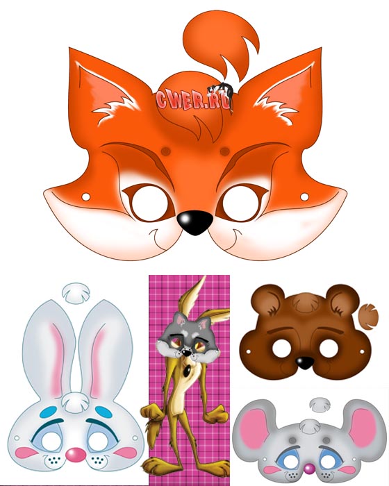 Карнавальные маски - зайка, лиса, медведь, мышка, сорока, волк. Все, что нам нужно - компьютер, какой-нибудь графический редактор, принтер - и можно смело идти на костюмированную вечеринку, либо сделать ребенку на утренник замечательную маску!
