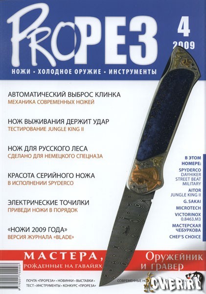 Самый авторитетный отечественный журнал о ножах, клинковом оружии, инструментах и обо всём, что с ними связано. Даны подробные описания и особенности различных моделей, обзоры новинок и новых технологий, приемы самообороны. «Прорез» - первый журнал о ножах не только в России, но и на всем постсоветском пространстве, продолжает выполнять свою благородную миссию в интересах многочисленного сообщества любителей настоящих ножей.