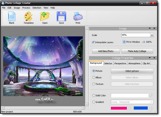 Photo Collage Creator - программа для создания фото коллажей и скрапбуков, которая превращает обычные цифровые фотографии и текст в собственное произведение искусства. Программа сочетает в себе десятки заранее приготовленных шаблонов коллажей, более 50 фото рамок, несколько специальных эффектов и гибкие издательские форматы. Photo Collage Creator включает в себя все нужное для превращения фотографий и текста в потрясающие коллажи и создания великолепных скрапбуков для печати, добавления в скрапбук, обмена с друзьями и размещения вашего произведения на стене. Программа позволит вам собрать ваши драгоценные фотографии в художественный сборник, полностью выражая ваши идеи. Использование дополнительных возможностей этой программы поможет достичь вам ослепительных результатов.
