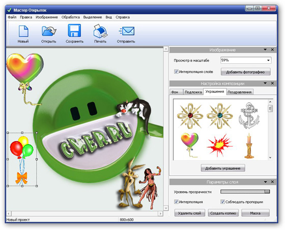 Фабрика Открыток - это программа для создания стильных художественных открыток различного назначения и вида.