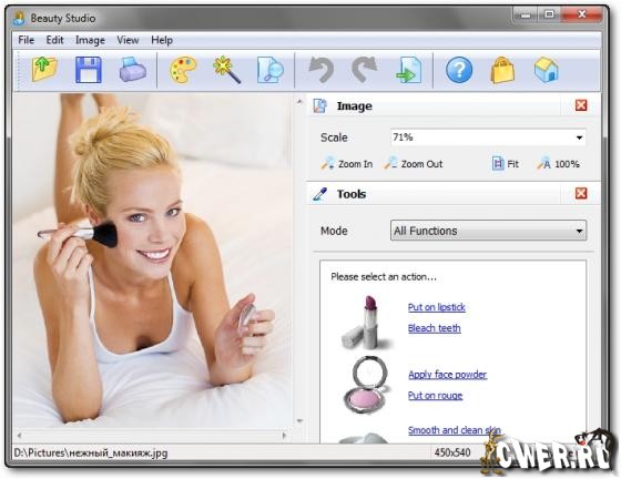 Beauty Studio - это новая программа для применения макияжа прямо на фотографии. С помощью этой программы вы можете легко удалить небольшие дефекты, создавать выразительные эффекты и даже изменить форму черт лица. Имеет удобный интерфейс. Beauty Studio позволяет в несколько минут как улучшить не очень хорошие изображения, так и сделать хорошие совершенными.