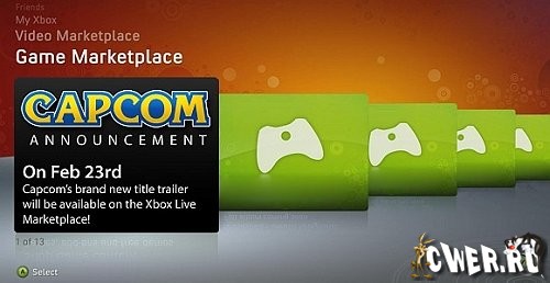 23 февраля 2009 года в сети должен дебютировать трейлер нового проекта от Capcom. Сначала ролик будет доступен только владельцам Xbox Live, но думается, вскоре после этого он попадёт на Youtube. Какая именно игра имеется в виду до сих пор неизвестно.