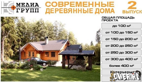 Большой каталог проектов деревянных домов, который содержит более 700 жомов и коттеджей, 110 проектов бань, 100 фотографий интерьеров деревянных домов. Проекты представлены общим видом фасадов, поэтажными планами с экспликациями помещений и краткой характеристикой с указанием материала стен, кровли и т.д., и разделены на категории по площади.