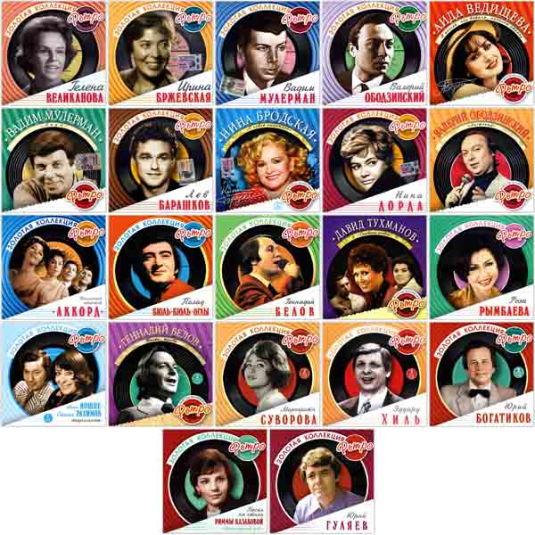 В представленную коллекцию вошли записи знаменитых советских исполнителей. В их числе: Гелена Великанова, Ирина Бржевская, Вадим Мулерман, Валерий Ободзинский, Аида Ведищева, Лев Барашков, Нина Бродская, Нина Дорда, Вокальный квартет "Аккорд", Полад Бюль-Бюль-оглы, Геннадий Белов, Роза Рымбаева, Алла Иошпе и Стахан Рахимов, Маргарита Суворова, Эдуард Хиль, Юрий Богатиков, Юрий Гуляев и некоторые другие в составе сборных альбомов