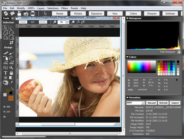 Artizen HDR - мощный графический фоторедактор для обработки цифровых снимков. В первую очередь Artizen HDR позиционируется, как графический редактор для работы с форматами цифровых фотографий: JPEG, RAW (Digital Camera RAW) и HDR (High Dynamic Range). Однако, поддерживаются несомненно и другие форматы, полный список поддерживаемых форматов выглядит так: ARTI, ATX, BMP, DIB, OpenEXR, EMF, GIF, HDR, ICB, ICO, JPG, JFIF, JPE, JPEG, PBM, PCD, PCX, PFM, PGM, PNG, PPM, PSD, PSP, RLE, SGI, TGA, TIF, TIFF, VDA, VST, WBMP, WMF. В том, числе даже, как редактор иконок может выступать эта программа.