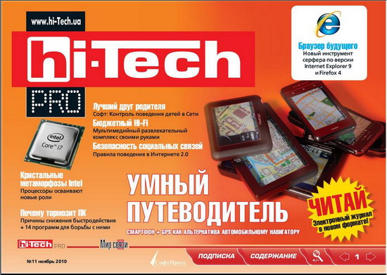 Hi-Tech Pro предлагает своим читателям знания и опыт команды экспертов, независимый взгляд и компетентные оценки тестовой лаборатории, наиболее богатую подборку программ и материалов на DVD. В каждом номере издания читатели найдут наиболее интересные новинки программного и аппаратного обеспечения, подробные тесты самых различных устройств, множество практических советов и рекомендаций о том, что составляет основу цифрового мира каждого современного человека и позволяет реализовать с помощью высоких технологий самые смелые замыслы.